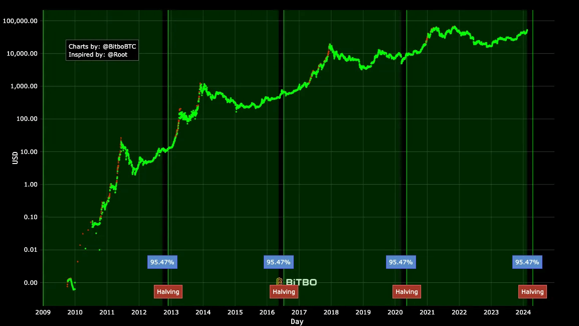 Here’s a great chart from Bitbo.io that highlights each halving event so far.